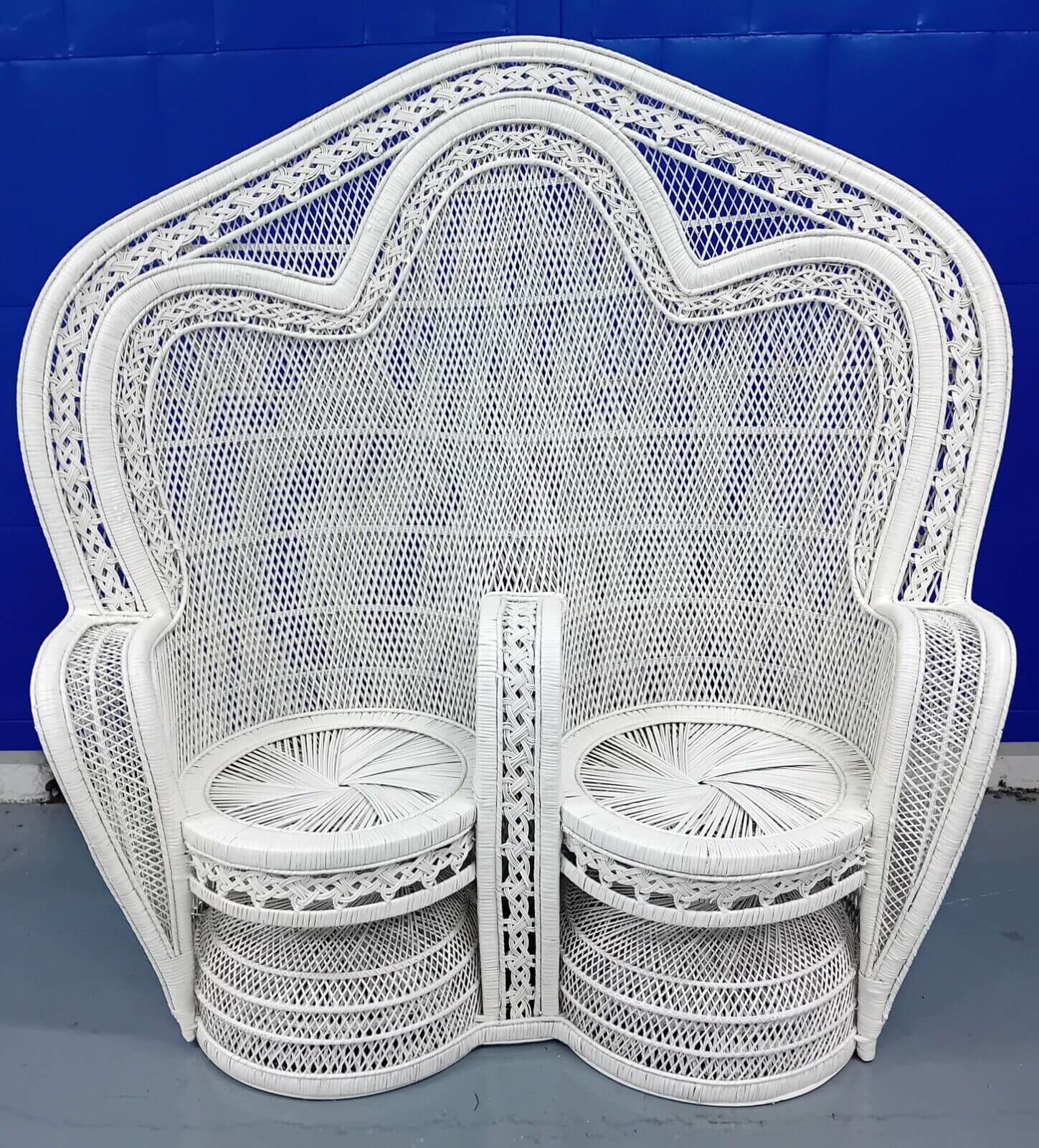 A rare find in the UK our stunning white double peacock chair is certainly a eye catching piece of furniture