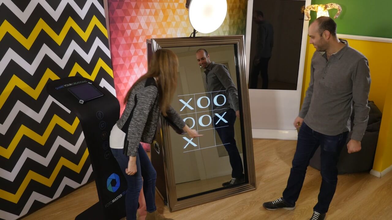 It looks like a full size mirror even with a ornate frame but really it is a full size touch sceen photo photo booth that creates a fun way to capture your event in hilarious photographs of your guests