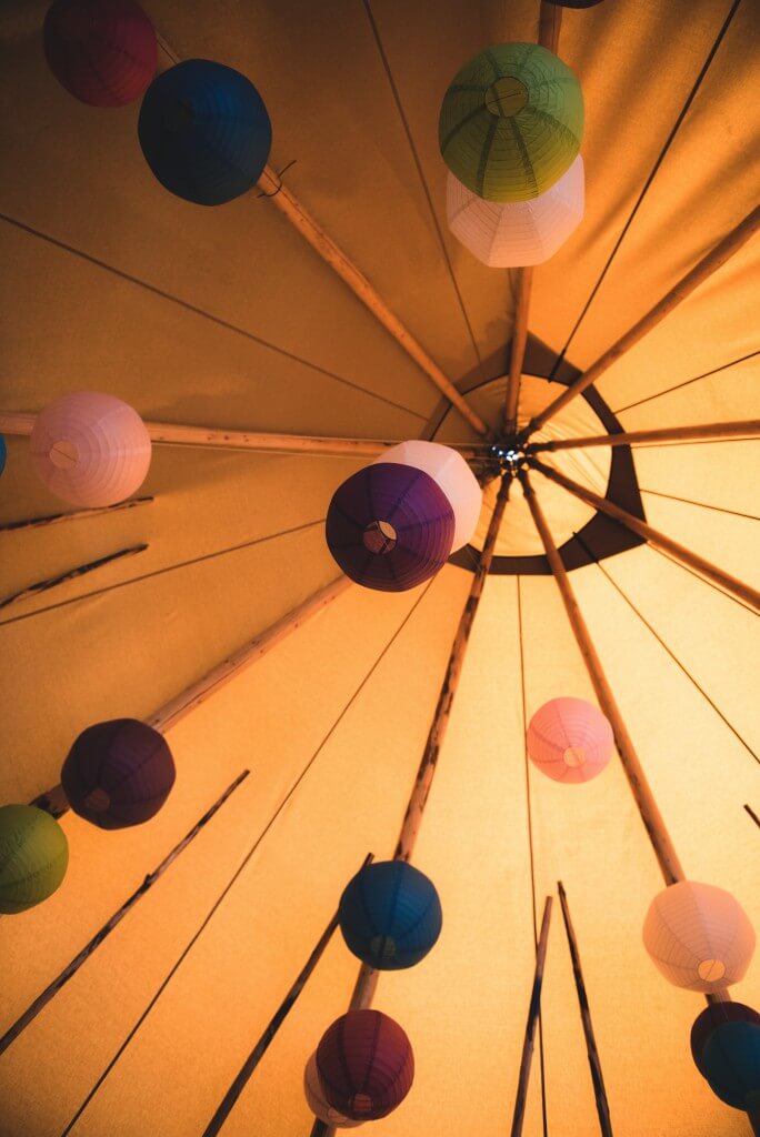 Included: A box of 60 mixed sized multi coloured paper lanterns