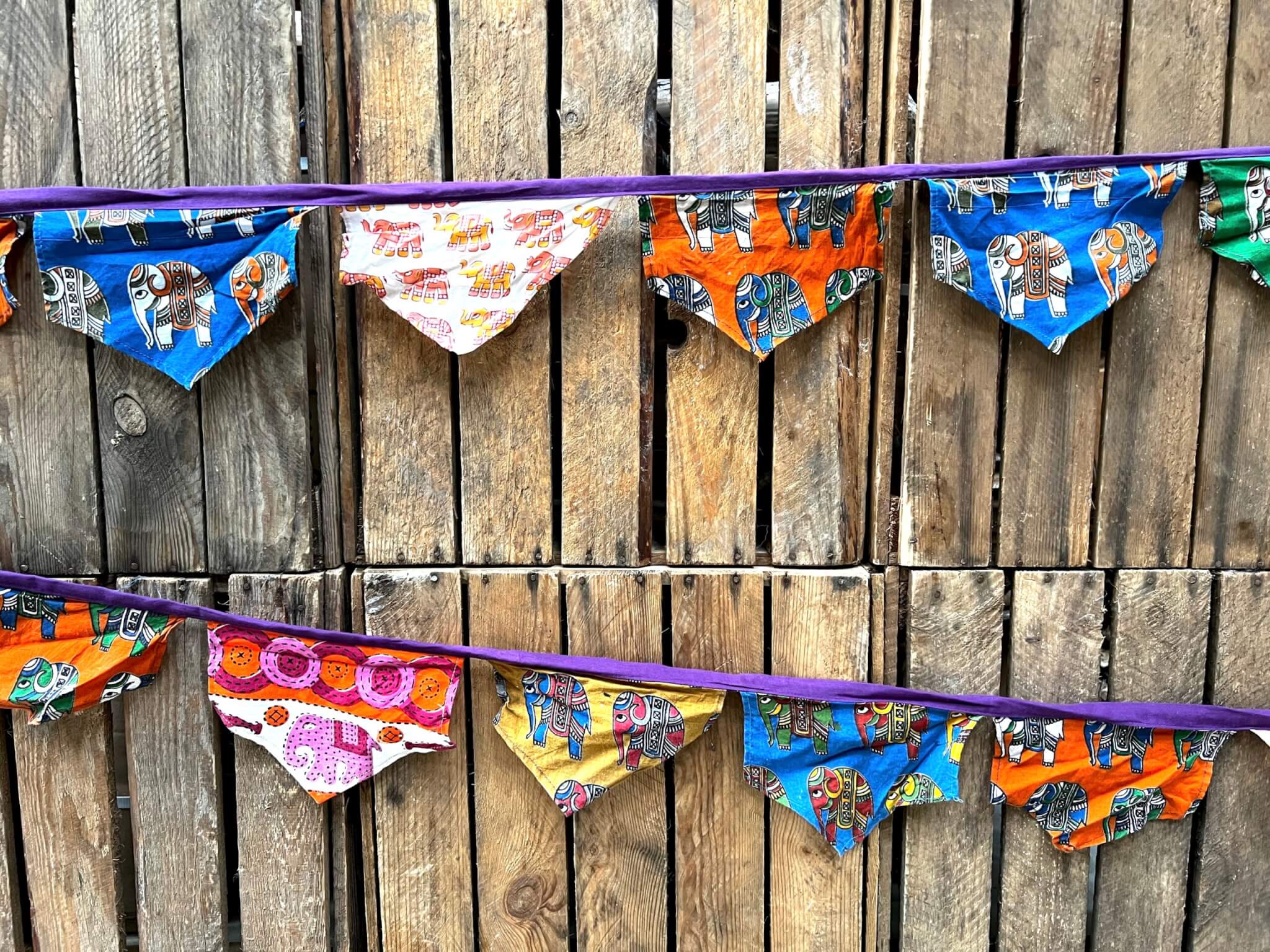 Vibrant multi coloured bunting with elephant print