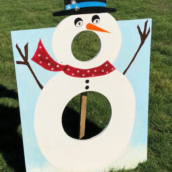 Included: Freestanding snowman board, tub of balls and a throw line