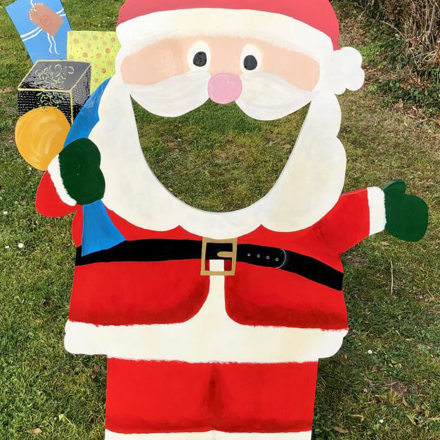 Included: 5ft high free-standing jolly Father Christmas, balls in a vintage bucket and a throw line
