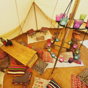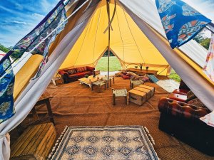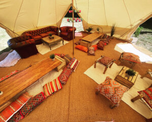 Each tent is fully equipped with cosy sleeping arrangements, soft furnishings, and ambient lighting to ensure a comfortable and inviting environment.