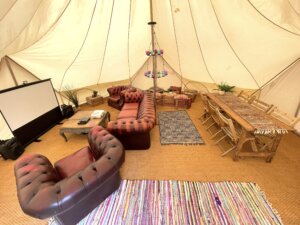 ⛺ Party Tents & Additional Structures – Alongside our bell tents, we provide marquees and other stylish outdoor structures to expand your sleepover space or create separate chill-out zones.