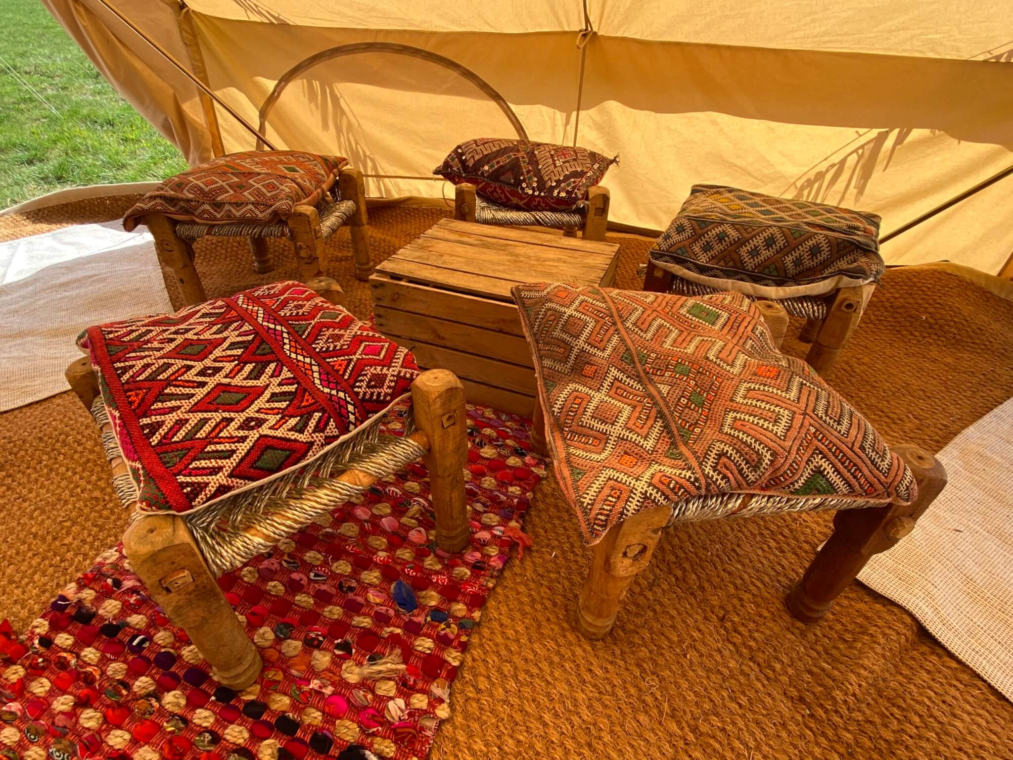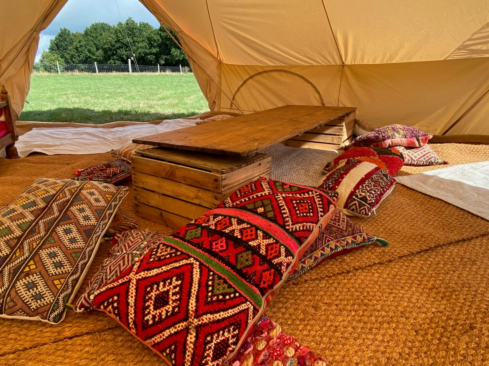 Our chill out tent can be hired as an add on to other bell tents or you can hire it on its own