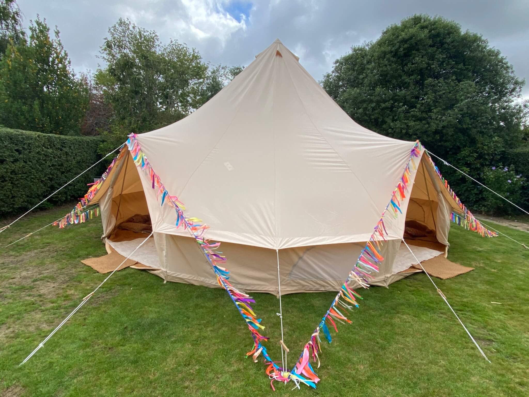Its a huge 7m diameter tent with 4 doors for easy access from each side of the tent. Doors can be kept open or closed depending on what you require