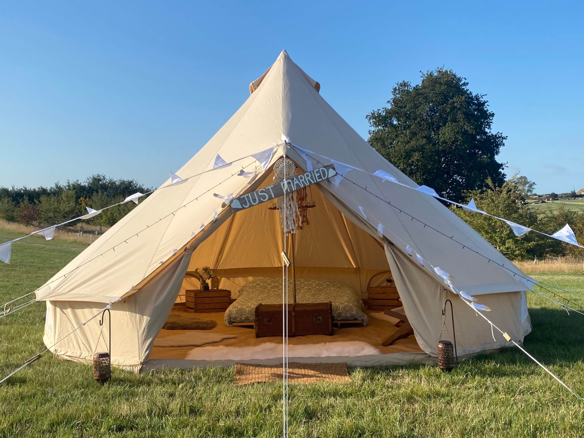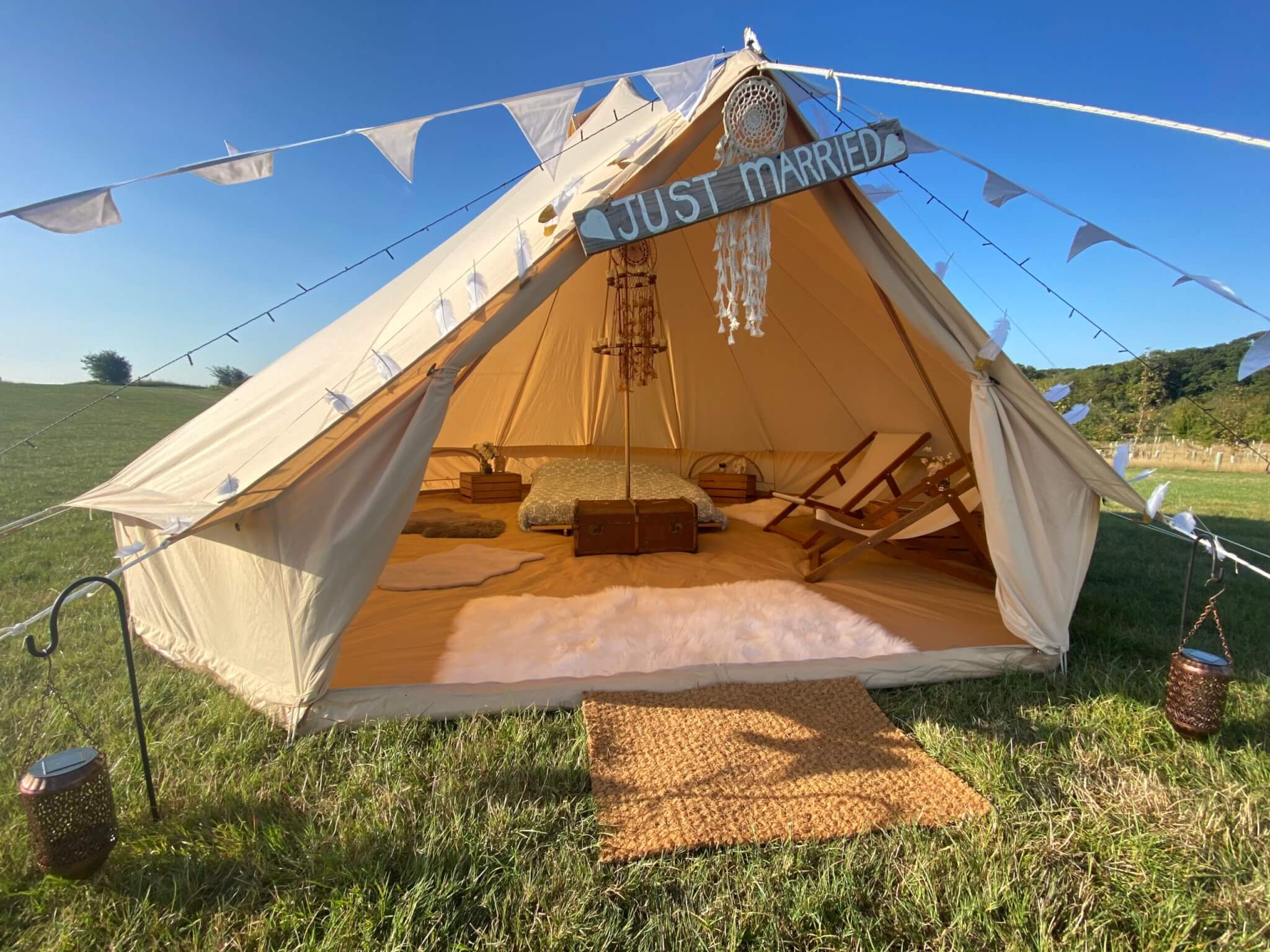 If you want to spend your wedding night in the most luxurious bell tent package out there then check out ourΒ Lotus Honeymoon Bell TentΒ package. It really is something else!